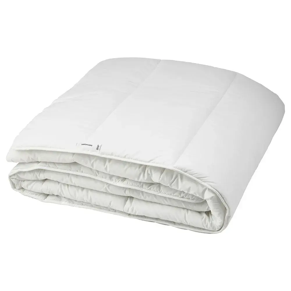 Теплое и простое в уходе одеяло из смесовой ткани из полиэстера и хлопка с наполнителем из мягкого полого полиэстерного волокна на основе переработанного сырья.