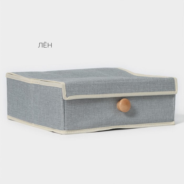 - Прямоугольный короб с легкостью поместятся на полке в многоярусном шкафу, секционном шкафчике и даже прикроватной тумбочке.