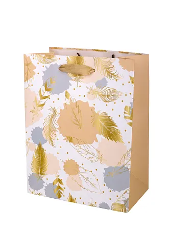Пакет бумажный "Золотые перья" 23х18х10см золотой