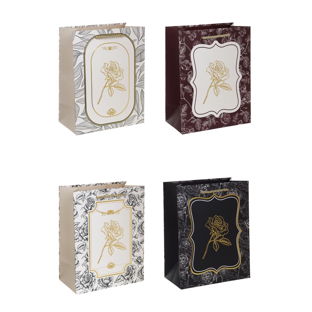 Пакет подарочный бумажный тм LADECOR, размер M 18x23x10 см, "Цветы" арт 2 имеет строгий элегантный и в то же время выразительный дизайн и идеально подойдет для оформления особенного подарка для подруги, коллеги, учителя или близкого человека на юбилей, годовщину или по другому важному поводу. Размер оптимален для упаковки сладостей, косметического набора, сувенира или аксессуара. Плотная прочная бумага и надежные текстильные ручки обеспечивают удобную переноску и сохранность содержимого. 4 дизайна в ассортименте.