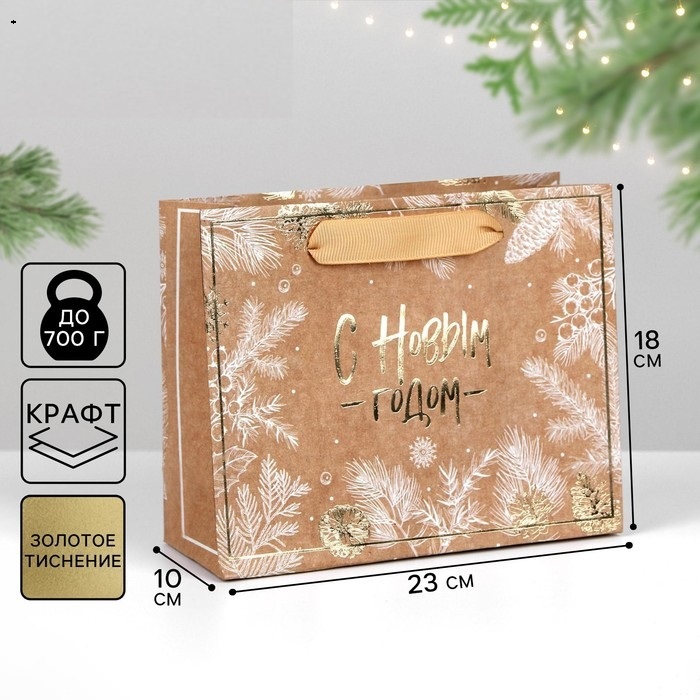 Пакет подарочный новогодний крафтовый «С Новым годом», MS 23×18×10 см