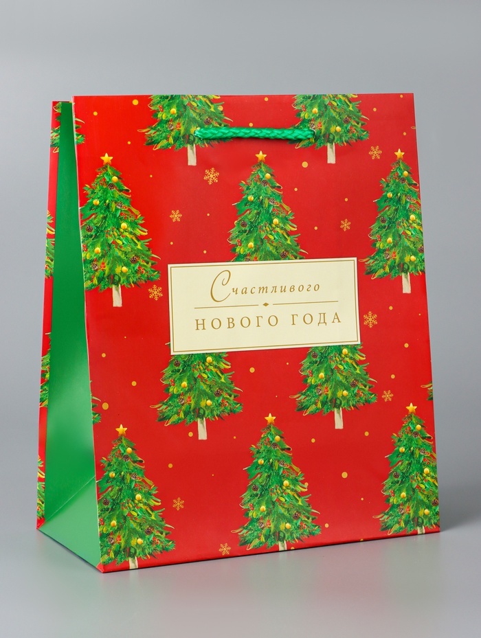 Пакет подарочный новогодний ламинированный «Счастливого Нового года», на бежевом, 18×22.3×10 см