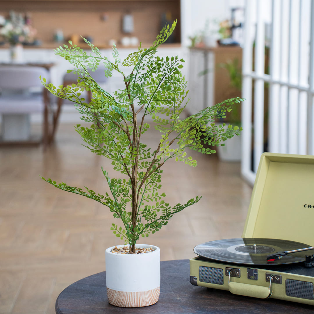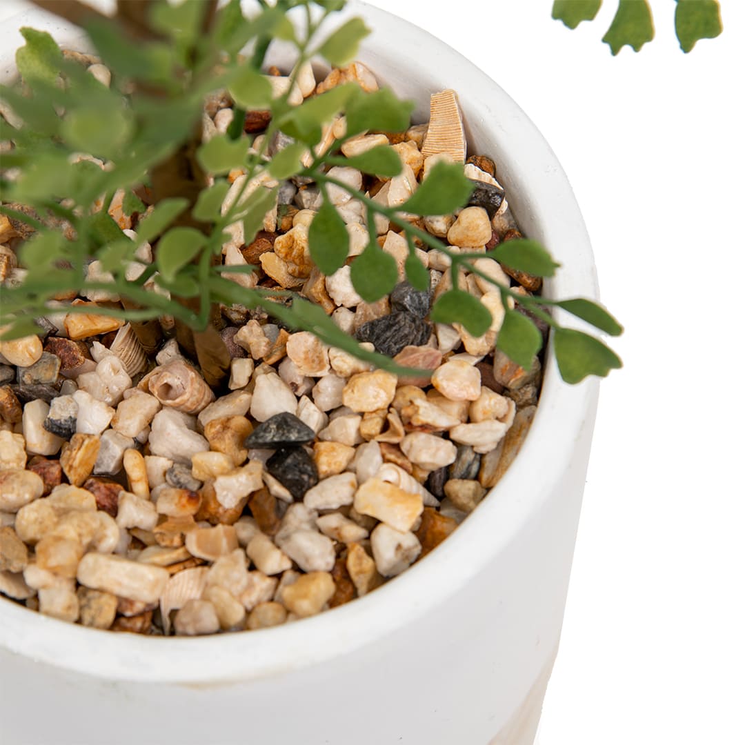 Декоративное растение папоротник курчавый в цементном горшке. Высота цветка 71 см. Почва внутри горшка изготовлена из пенопласта, стебли - из гибкого пластика с металлическим каркасом внутри, а листья - из клеенчатого ПВХ-материала, благодаря которому они максимально похожи на живые. На дно горшка приклеены прорезиненные протекторы для дополнительной устойчивости и защиты поверхности от мелких царапин и других повреждений. Папоротник курчавый в цементном горшке - это идеальный аксессуар для оживления пространства в домашнем или офисном интерьере: все элементы смотрятся абсолютно натурально и при этом цветок не требует полива или пересадки. Растение не осыпается, не оставляет пыльцу и не вызывает аллергических реакций. Для ухода достаточно протирать листья влажной губкой или салфеткой. Материал изготовления цветка: пластик, металл, цементный горшок, основа из пенопласта.