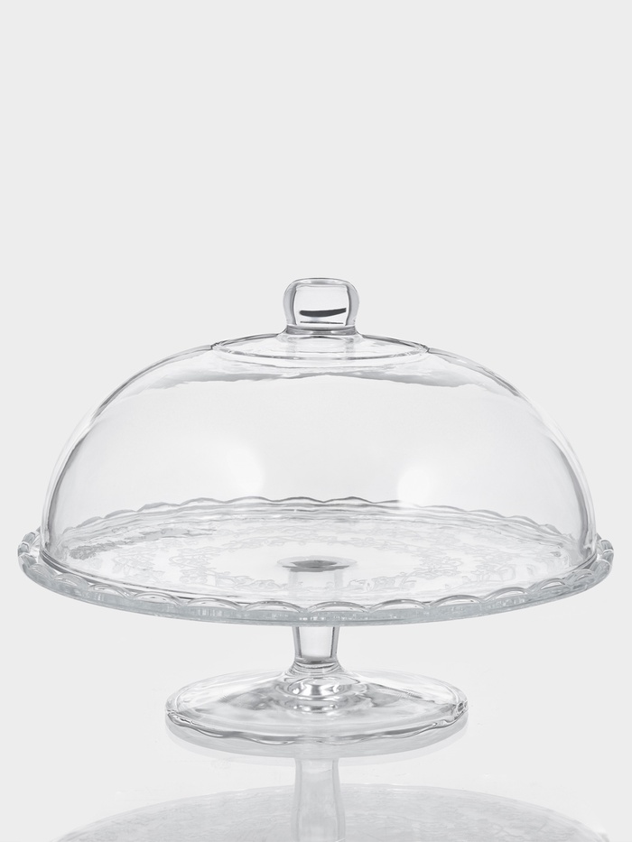 Подставка для торта – незаменимая посуда на любом празднике. Широкое, плоское блюдо позволит красиво подать выпечку, сладости, небольшие закуски и торты. Изготовлена из стекла, имеет удобную крышку с ручкой. Крышка защитит десерт от обветривания и лишних запахов, поэтому пирожные и торты в подставке можно ставить в холодильник.