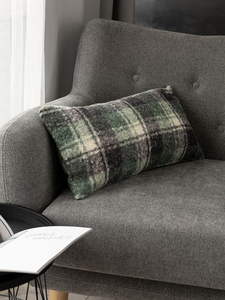 Подушка декоративная DeNASTIA 30х60 см букле клетка на молнии, цвет серый/зеленый. Декоративная подушка DeНАСТИЯ станет стильным акцентом в интерьере любой комнаты: от спальни до гостиной. Думочка выполнена из мягкого эко меха с фактурой букле. Наволочка подушки с фактурой барашка не оставит равнодушным всех, кто любит тепло, уют и домашний комфорт, идеальное решение для тех, кто хочет добавить индивидуальности в свой интерьер и расставить яркие акценты в помещении. Фактура букле обладает невероятной мягкостью, наволочка настолько приятна к телу тактильно, что не захочется выпускать ее из рук. Мягкая и приятная на ощупь, подушка интерьерная выполнена из 100% полиэстера с ворсистой фактурой, имитирующей барашка. Искусственный мех под барашка добавит оригинальности и шарма вашему пространству. Застежка на потайной молнии обеспечивает удобство использования. При производстве текстиля для дома используется эко мех высокого качества. Рекомендована ручная стирка.