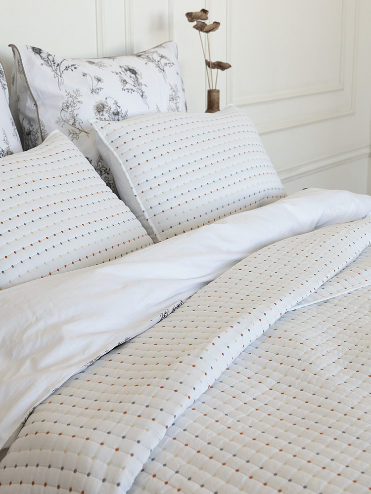 Покрывало в стиле сканди прекрасно подойдет для ежедневного украшения Вашей спальни. Стеганое покрывало с пич-эффектом — это идеальный выбор для тех, кто ценит комфорт и уют в своём доме. Оно выполнено из мягкого и приятного на ощупь материала, который создаёт ощущение бархата на коже. Пич-эффект придаёт стеганому покрывалу особую нежность и бархатистость. Этот эффект достигается благодаря специальной обработке ткани, которая делает её поверхность бархатистой и приятной на ощупь. Покрывало в стиле минимализм станет прекрасным дополнением к любому интерьеру. Оно подойдёт как для спальни, так и для гостиной. Если вы хотите создать в своём доме атмосферу уюта и комфорта, то покрывало с пич-эффектом — отличный выбор. Покрывало не даёт усадки после многократной стирки и не подвержено миграции волокон. Рекомендация по уходу: предусмотрена деликатная стирка, на щадящем режиме, без отбеливающих компонентов.