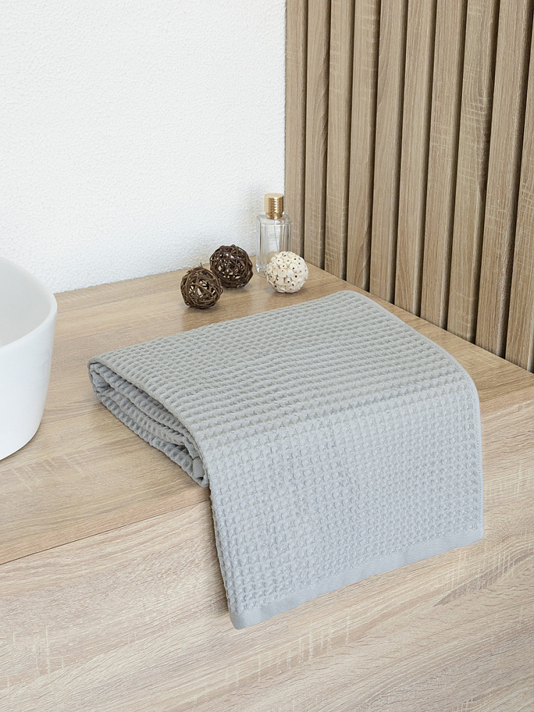 Полотенце вафельное DeNASTIA для бани/сауны 300gsm 70x140, 100% хлопок, светло-серый