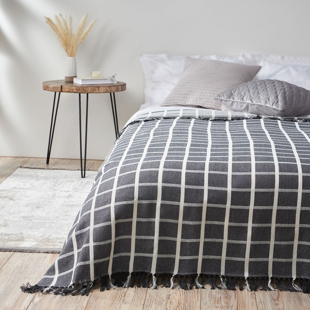 Хлопковое покрывало PROVANCE Фрэя размером 200х220 см – это эстетичный домашний текстиль, который выполняет как декоративную, так и практическую функцию. Плед послужит в качестве покрывала на кровать или диван, может использоваться в качестве легкого одеяла как дома, так и на природе. Благородный дизайн в серых оттенках с принтом в клетку и декоративной бахромой поддержит выбранный интерьерный стиль и будет гармонично сочетаться с мебелью, отделкой и предметами декора. Приятный нежный материал дарит ощущение комфорта, не электризуется и не колется. Обладает дышащими, впитывающими и согревающими свойствами. Хорошо отстирывается, не линяет и не выцветает.