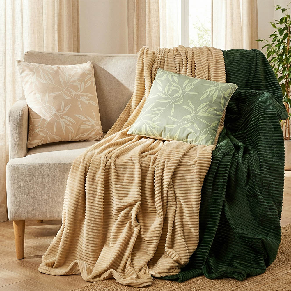 Плед микрофибра PROVANCE «Мосс» 150х200 см, полоска, плотность 260 г/м, 100% полиэстер – это качественный домашний текстиль с классическим полосатым узором в спокойной однотонной цветовой гамме, который станет отличным дополнением интерьера в скандинавском, современном или эко-стиле, создавая уютную атмосферу для отдыха и расслабления в гостиной, спальне или на даче. Мягкая микрофибра дарит приятные тактильные ощущения, не сминается и не скатывается, отлично сохраняет тепло. Плед может использоваться в качестве одеяла или покрывала на кровать или диван. Изделие легко отстирывается, быстро сохнет и сохраняет первоначальную форму даже после многочисленных стирок. Доступно 2 цветовых решения: бежевый и зеленый.