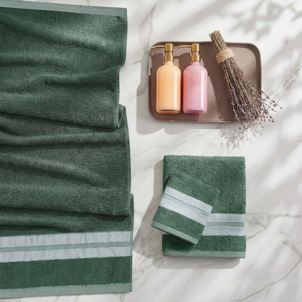 Полотенце махровое PROVANCE «Мосс», 100% хлопок, размер 30х50 см, плотность 450 гр/м – это компактное полотенце, которое идеально подходит для лица, рук и ног. Модель дополнена аккуратным бордюром, который придаёт изделию завершенный и стильный вид. Представлено в двух благородных природных оттенках – светло-зелёном и тёмно-зелёном, которые гармонично вписываются в интерьер современной ванной комнаты. Мягкая текстура обеспечивает комфортное и бережное впитывание влаги, не оставляя ворсинок на коже. Изделие сохраняет форму после многочисленных стирок, не линяет и не мнется.