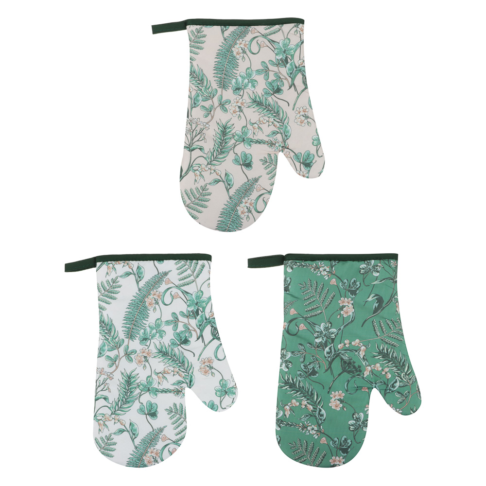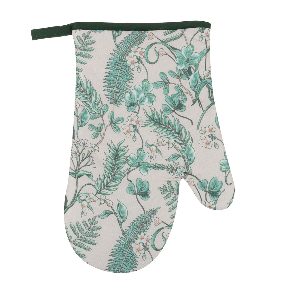 Прихватка-варежка PROVANCE «Мосс» 17х27 см «Цветы» с петелькой для крючка, из 100% полиэстера добавит ноту природной гармонии в интерьер кухни. Приятная глазу нежно-зеленая цветовая гамма с ненавязчивым растительным принтом создает атмосферу спокойствия и уюта. Варежка имеет универсальный размер, комфортно сидит на руке, не соскальзывает и эффективно защищает кисть и запястье при работе с горячей посудой и духовкой. Плотный термостойкий полиэстер легко отстирывается, устойчив к износу, не мнется и сохраняет форму, выдерживая даже частые стирки. 3 дизайна в ассортименте.