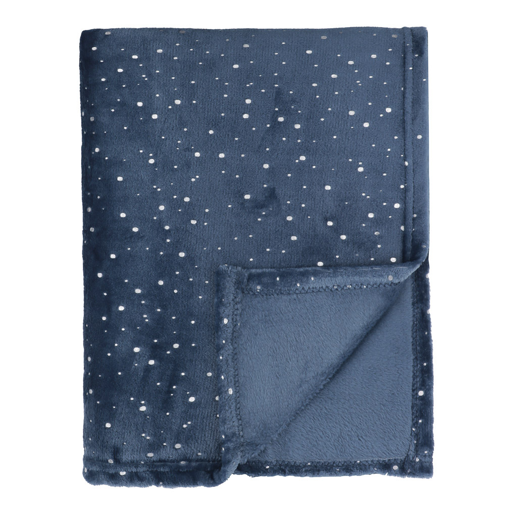 Плед с фольгированным принтом PROVANCE Нордик, 130х170 см, из 100% полиэстера имеет невероятно мягкую плюшевую текстуру, будет дарить тепло и уют зимними вечерами, дополнит интерьер спальни или гостиной, а также может стать приятным подарком на Новый год. Лаконичный серебристый узор на темно-синем фоне напоминает звездное небо, гармонично вписывается в любой интерьерный стиль и прекрасно комбинируется с другими текстильными элементами обстановки: диванными подушками, покрывалами, занавесками, формируя вместе с ними завершенный дизайн интерьера. Плед можно накинуть на плечи, расположить на кровати, диване или кресле или использовать в качестве легкого одеяла. Изделие хорошо отстирывается без потери формы, быстро сохнет и не мнется.