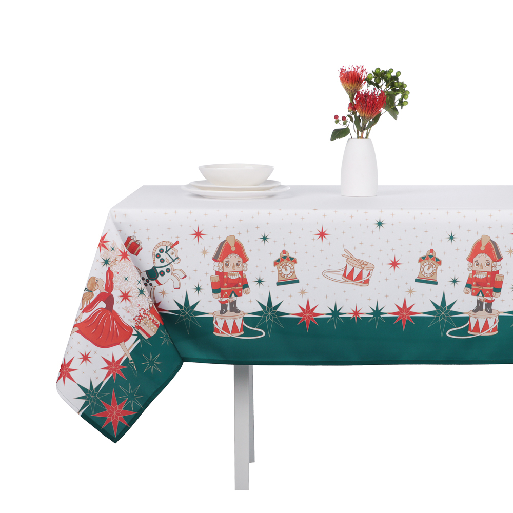 Скатерть текстильная PROVANCE Щелкунчик размером 140х180 см, из 100% полиэстера, для прямоугольного стола превратит новогодний ужин в настоящую сказку. Имеет эстетичный дизайн и выполнена в традиционной рождественской цветовой гамме с преобладанием красных и зеленых оттенков. Ткань из 100% полиэстера не мнется, легко очищается, устойчива к воздействию влаги, не деформируется, обладает отличной износостойкостью и не скользит по столу. Гармонично сочетается с посудой и столовыми приборами из различных коллекций, позволяя создать свой неповторимый стиль сервировки. 2 дизайна в ассортименте.