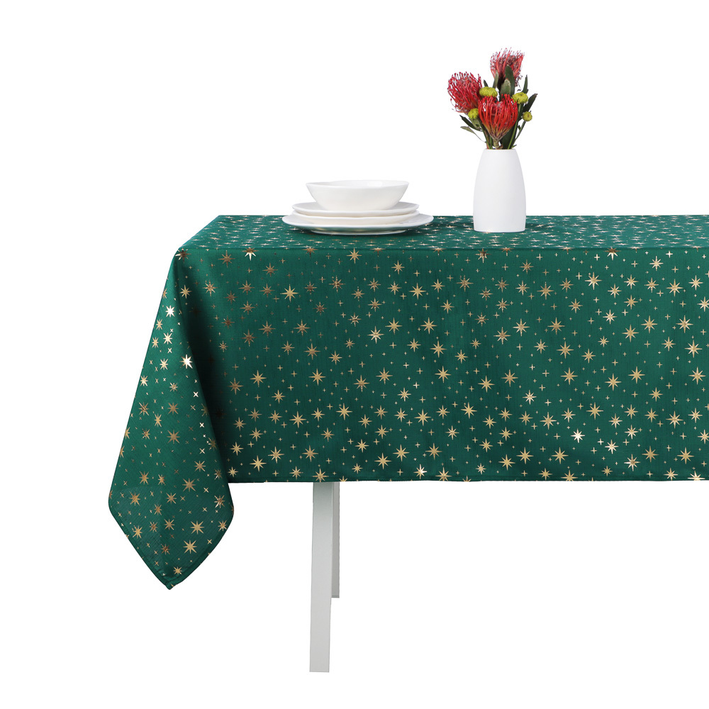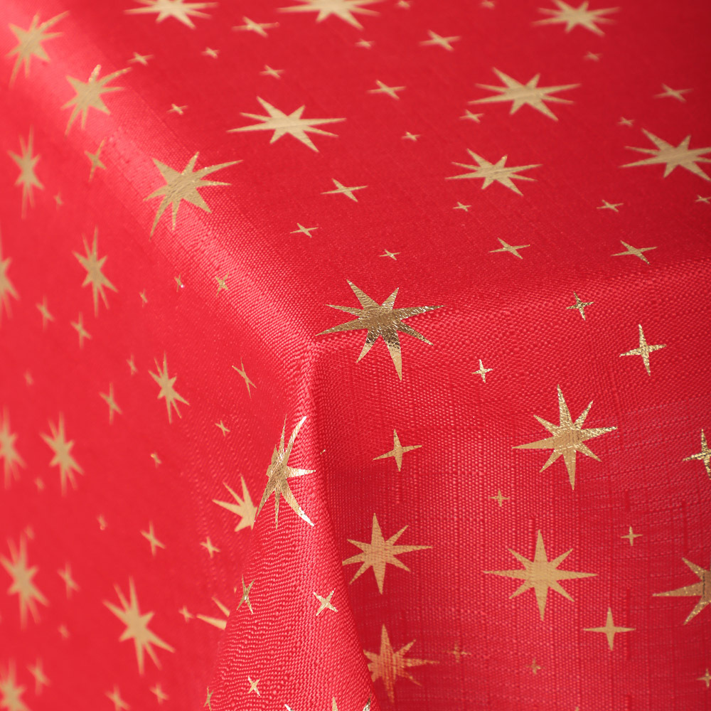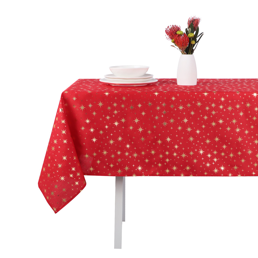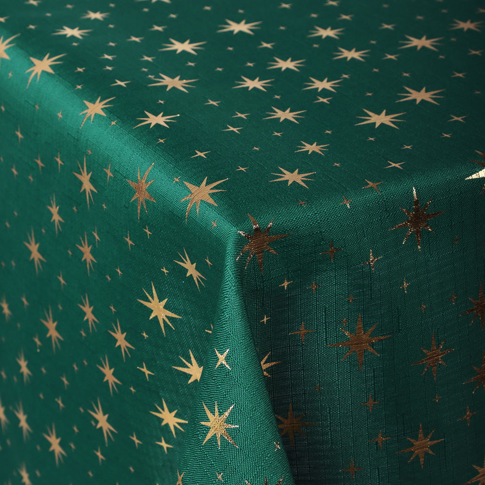 Скатерть текстильная с фольгированным принтом PROVANCE Щелкунчик размером 140х180 см из 100% полиэстера – это эстетичный столовый текстиль для сервировки новогоднего и рождественского стола. Серия включает 2 дизайна в классических праздничных цветах – зеленом и красном. Яркий фольгированный золотистый принт со звездами создает эффектное мерцание и делает обстановку по-настоящему торжественной. Скатерть из полиэстера не мнется, легко стирается и быстро сохнет. Станет прекрасным фоном для разнообразных комплектов посуды, столовых и приборов и других элементов сервировки. Размер оптимален для стола на 6 персон.