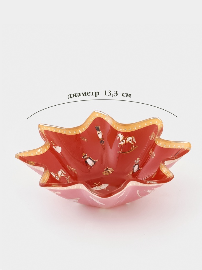 Новогодний салатник в форме звезды в красном цвете идеально подойдет для подачи салатов или закусок так, чтобы гости сразу почувствовали атмосферу Нового года.