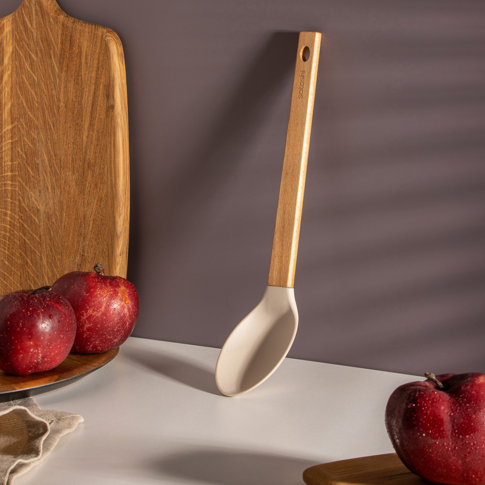 Ложка SATOSHI «Айвори» из термостойкого нейлона - отличная находка для размешивания блюд и распределения их по индивидуальным тарелкам. Кроме того, она не оставляет царапин, безопасно использовать на антипригарном покрытии. Эргономичная ручка посуды обеспечит удобный хват, предотвращая выскальзывание из рук.