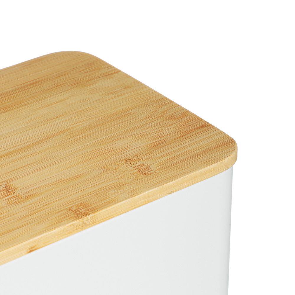 Хлебница с бамбуковой крышкой SATOSHI – стильное и экологичное решение для хранения хлеба и выпечки. Практичная прямоугольная хлебница размером 33х17,5х13,5 см изготовлена из прочной жести с белоснежным покрытием, которое не только придает элегантный внешний вид, но и обеспечивает долговечность. Натуральная бамбуковая крышка не только выглядит стильно, но и обладает антибактериальными свойствами, способствуя поддержанию свежести продуктов. Идеальный выбор для тех, кто ценит экологичность, функциональность и современный дизайн!