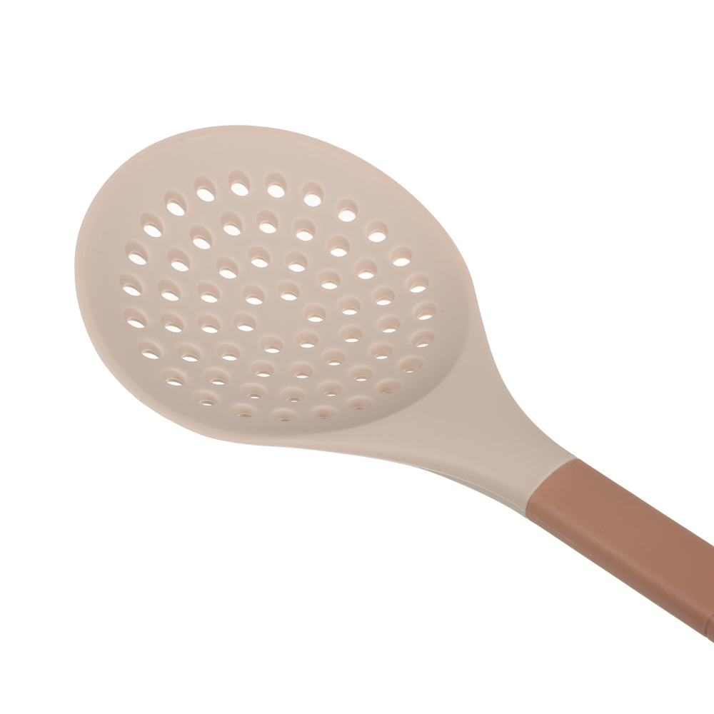 Шумовка SATOSHI Кантри из термостойкого силикона сочетает практичность и эстетику. Функциональная перфорация эффективно удаляет излишки масла и жидкости, а компактное отверстие на ручке обеспечивает удобное хранение. Мягкий бежевый оттенок гармонично дополняет посуду одноименной коллекции. Изделие бережно взаимодействует с антипригарными покрытиями, сохраняя их целостность. Эргономичная форма обеспечивает комфортный захват во время готовки. Идеальный инструмент для жарки, варки и приготовления деликатных продуктов.