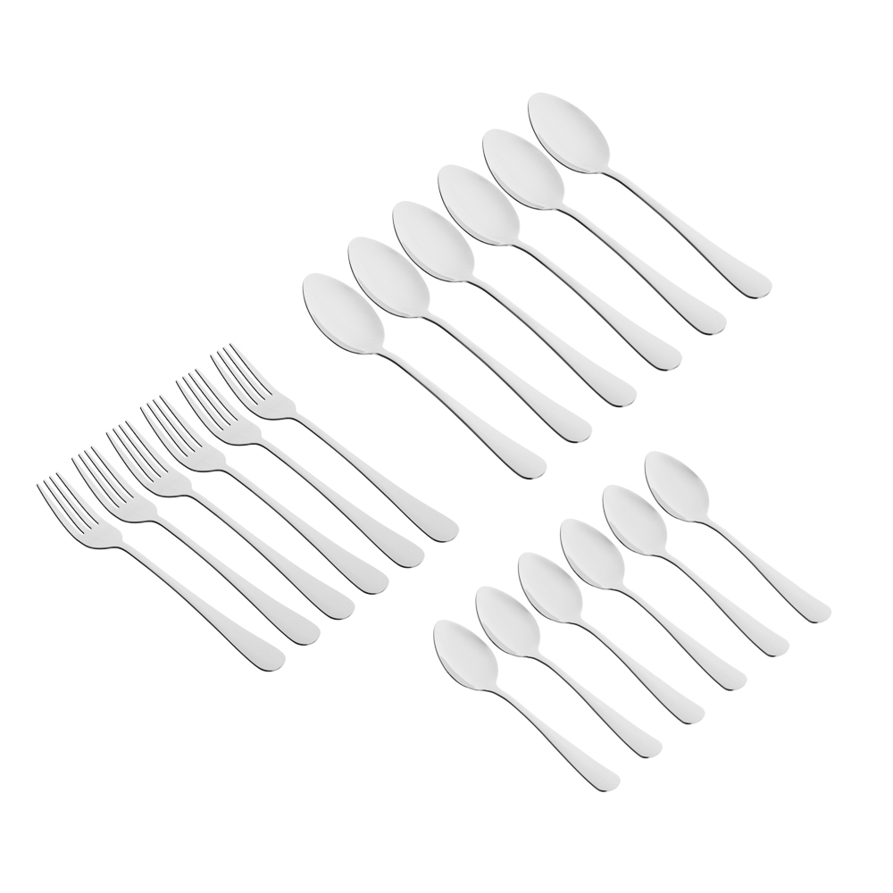 Набор столовых приборов SATOSHI «Классика» из 18 предметов содержит необходимый минимум для повседневной и праздничной сервировки на 6 персон. В состав набора входят: 6 столовых ложек, 6 вилок и 6 чайных ложек. Приборы имеют классическую элегантную форму, серебряный цвет, что делает их универсальными как для повседневного использования, так и для торжественных мероприятий. Сочетаются с любой посудой. Изготовлены из прочной нержавеющей стали, не подвержены коррозии и устойчивы к деформации. Легко моются, не тускнеют. Подходят как для домашнего использования, так и для заведений общепита.