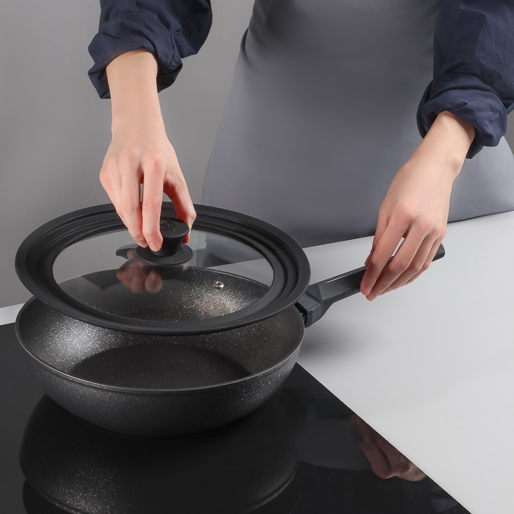 Крышка универсальная стекло/силикон с ненагревающейся ручкой от BY Collection – это умное решение для кухни. Всего одна крышка заменит целый набор крышек трех размеров: 24-26-28 см. Изготовлена из прозрачного стекла с отверстием для выпуска пара, что позволяет контролировать процесс приготовления, не открывая крышку. Края из пищевого силикона адаптируются под размер кастрюли или сковороды, а также обеспечивают герметичный прижим, препятствуя теплопотерям.