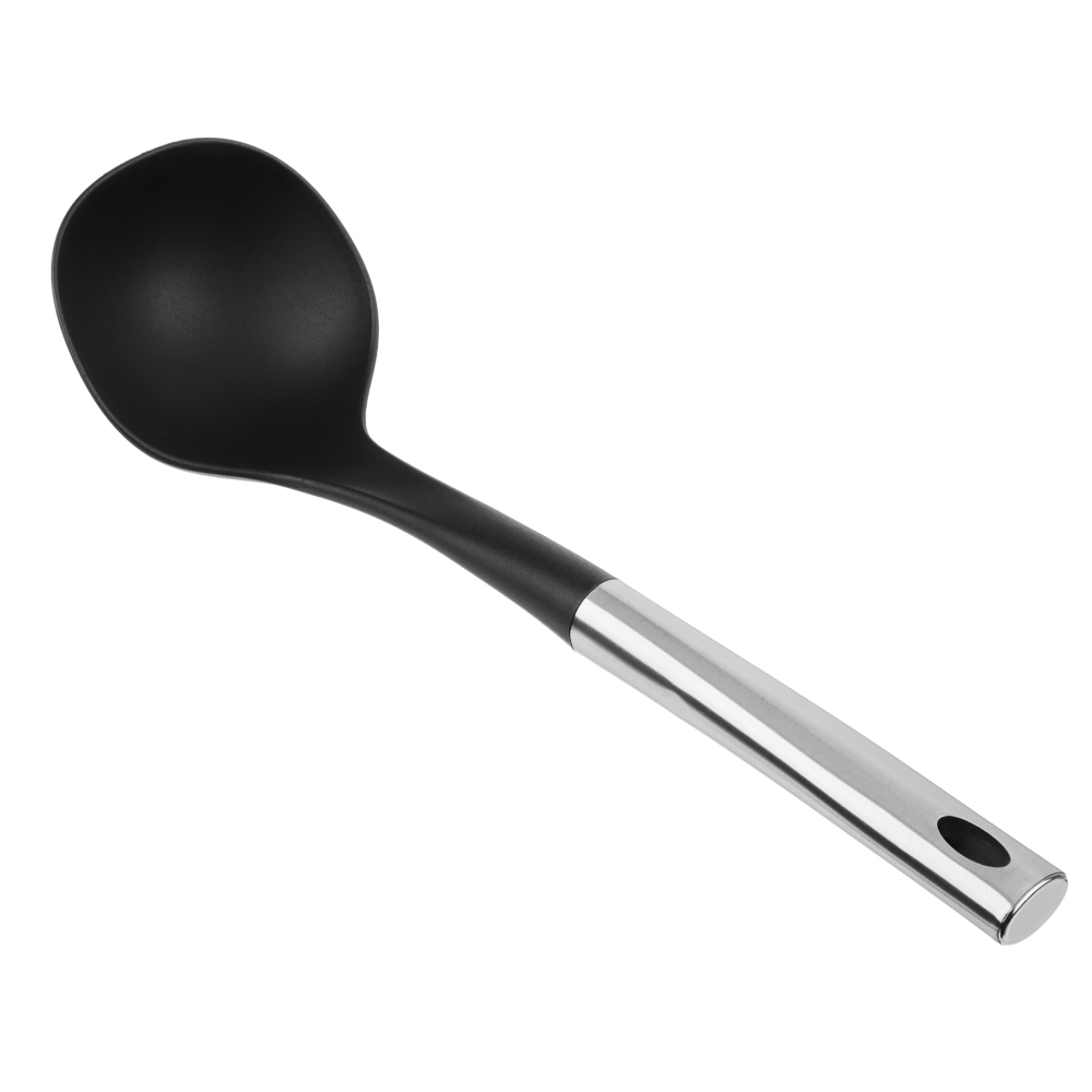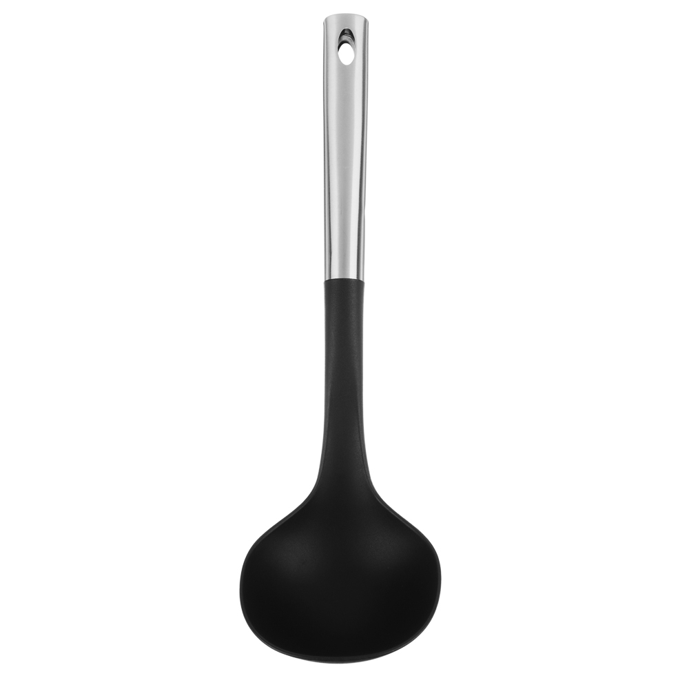 Половник SATOSHI «Монте», 32х9,5 см – это практичное удобное приспособление для домашней кухни. Изготовлен из термостойкого нейлона с ненагревающейся ручкой из нержавеющей стали. Имеет универсальный дизайн, который впишется в интерьер современной кухни и будет сочетаться с другими кухонными принадлежностями. Половник не гнется, не деформируется, не выделяет вредных веществ при взаимодействии с горячей едой. Легко моется. Подходит для мытья в посудомоечной машине. Не царапает посуду и антипригарные покрытия. Предусмотрено отверстие для подвеса.