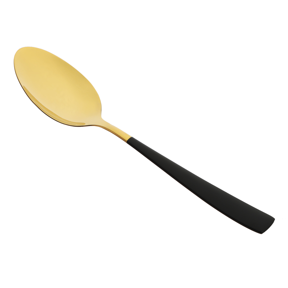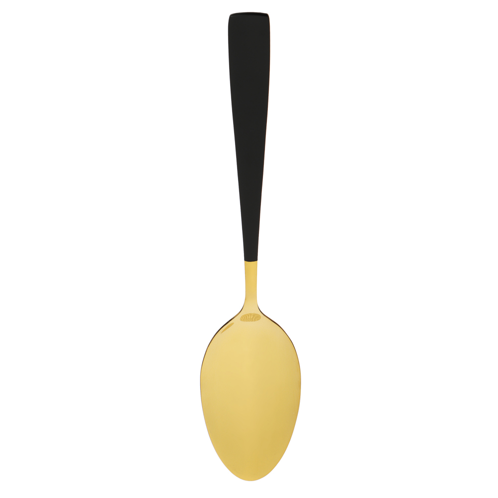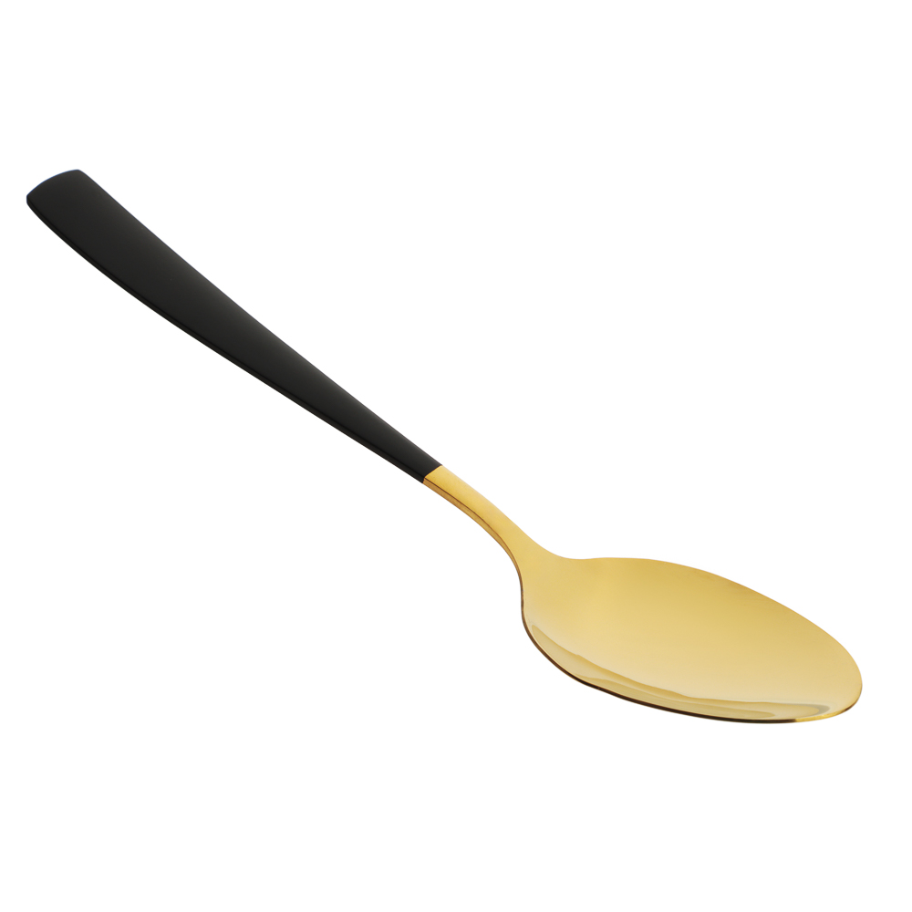 Столовая ложка SATOSHI Talinka изготовлена специально для эксклюзивной сервировки премиум класса для особых случаев и торжественных мероприятий. Выполненная из высококачественной нержавеющей стали, она сочетает в себе безупречную функциональность и утонченный дизайн в благородной черно-золотой гамме. Прекрасно комбинируется с белой и цветной посудой, а также со столовым текстилем различных стилей и расцветок. Изделие устойчиво к образованию царапин, не боится коррозии и не подвержено деформации. Станет прекрасным дополнением комплекта столового сервиза.