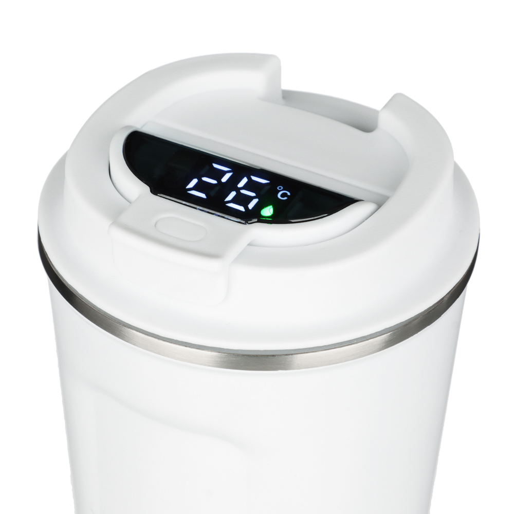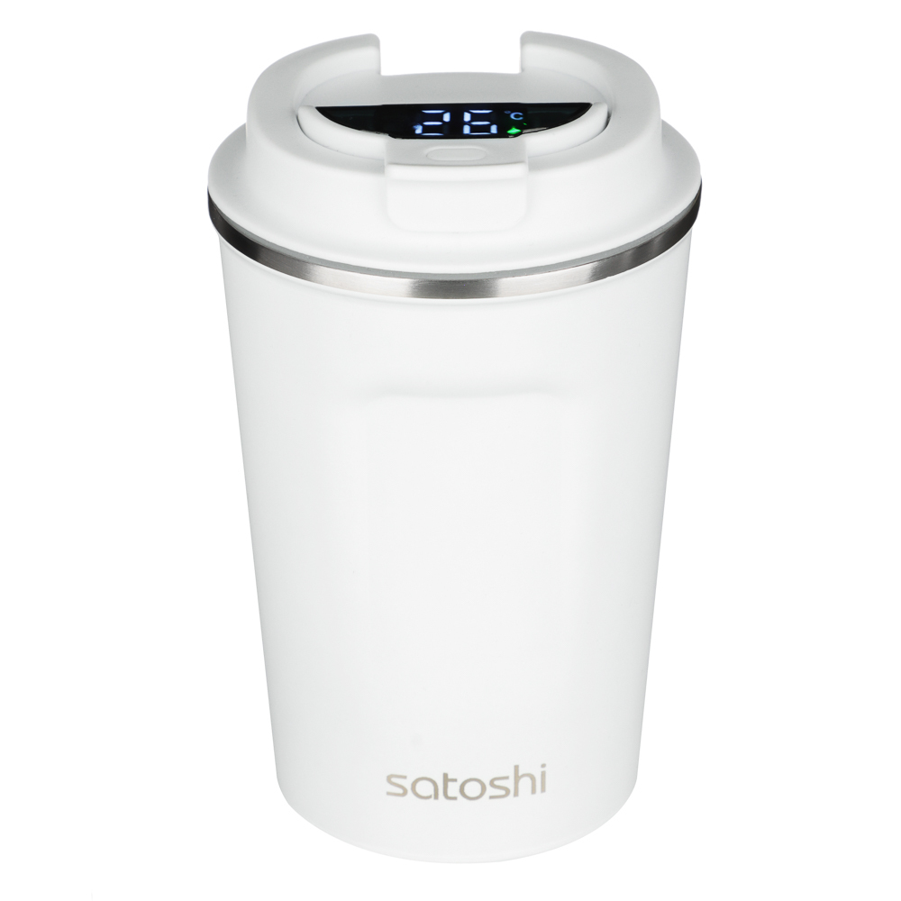 Термос-кружка SATOSHI объемом 350 мл выполнена из высококачественной нержавеющей стали марки 18/10. Идеально подходит для хранения горячих или холодных напитков, сохраняя температуру содержимого на протяжении длительного времени. Особенностью этой термокружки является наличие встроенного датчика температуры, который позволяет быстро и точно определить текущую температуру напитка. Это удобно для тех, кто хочет знать точную температуру своего напитка, не открывая крышку термоса. Дизайн термоса-кружки сочетает в себе функциональность и стиль. Благодаря компактному размеру, она легко помещается в сумке или рюкзаке, что делает ее идеальным выбором для активного образа жизни. Нержавеющая сталь обеспечивает устойчивость изделия к механическим повреждениям и коррозии. Термос легко моется и сохраняет свои свойства на протяжении многих лет использования.