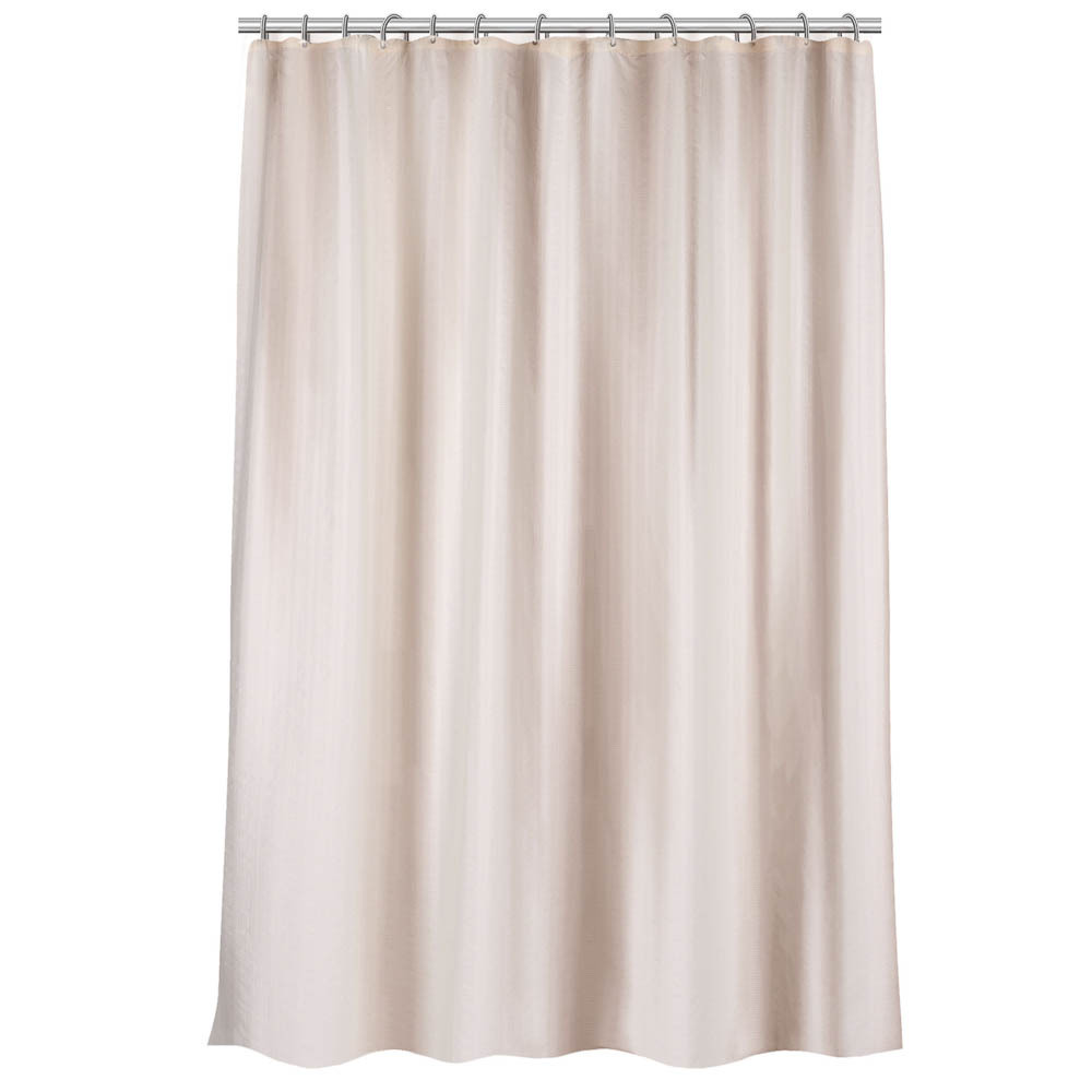 Элегантная полиэстеровая штора в нежном оттенке экрю добавит уюта и завершенности вашей ванной комнате. Плотное полотно (80 г/м²) размером 180×200 см с мягкими складками создает аккуратный вид и надежно защищает от брызг. Светлый кремовый цвет гармонично сочетается с различными стилями интерьера – от классического до современного минимализма. Штора крепится при помощи колец (приобретаются отдельно), что позволяет легко установить ее на любой карниз.