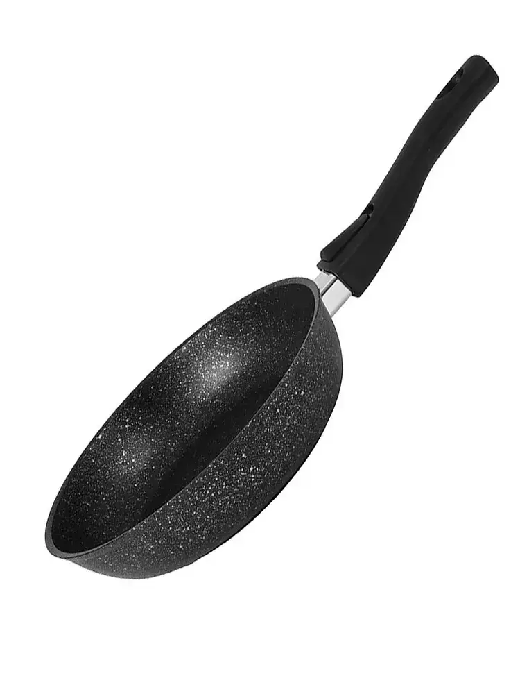 Сковорода Kukmara из литого алюминия традиционной формы имеет отличные теплораспределительные и теплоаккумулирующие свойства, и блюда в ней получаются сочными и ароматными. Удобное хранение обеспечивает съемная ручка.