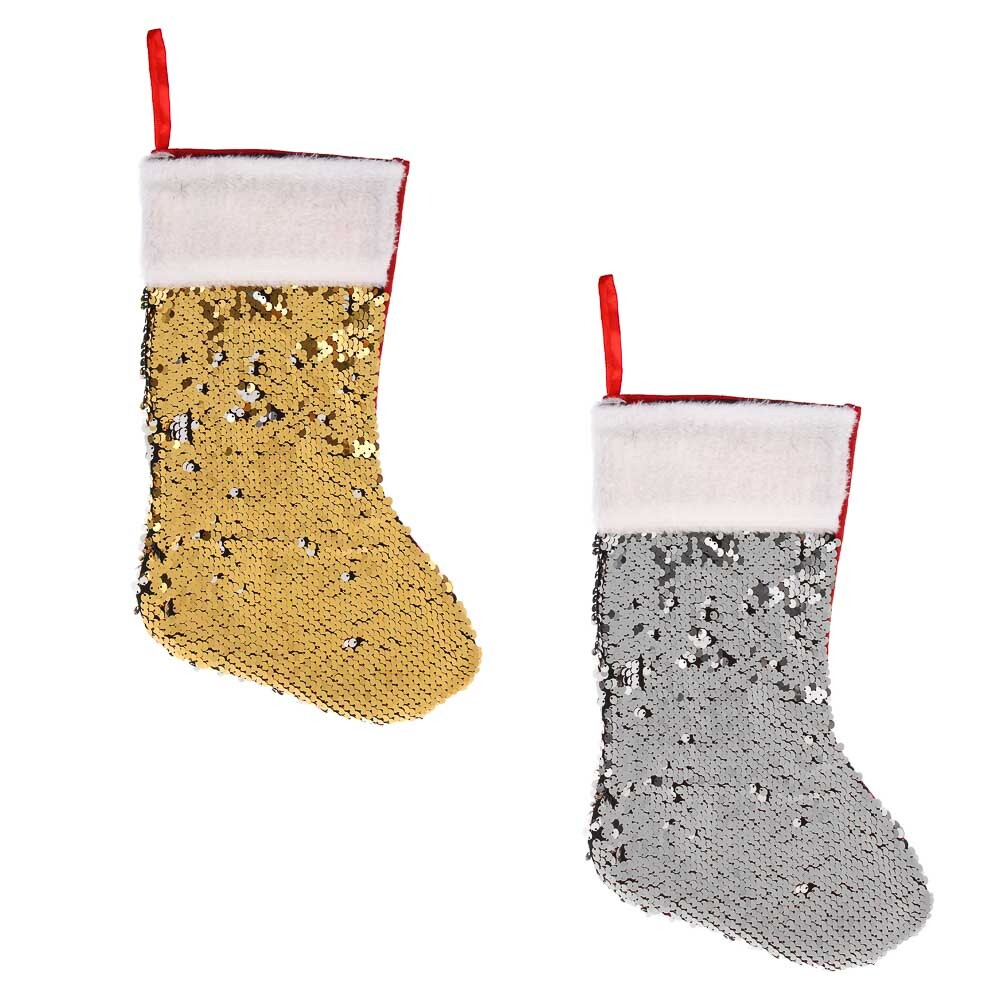 Носок декоративный новогодний с двусторонними пайетками от СНОУ БУМ, 22х35 см из полиэстера – это не просто украшение, а яркий живой акцент в праздничном интерьере. Двусторонние пайетки создают волшебный эффект перемены цвета от легкого прикосновения руки, наполняя пространство магией и игрой света. Эффектно переливаются в свете гирлянд, создавая завораживающее зрелище, которое приведет в восторг и детей, и взрослых. В носок можно поместить небольшой подарок в виде сладостей или миниатюрного сувенира. 2 дизайна в ассортименте.