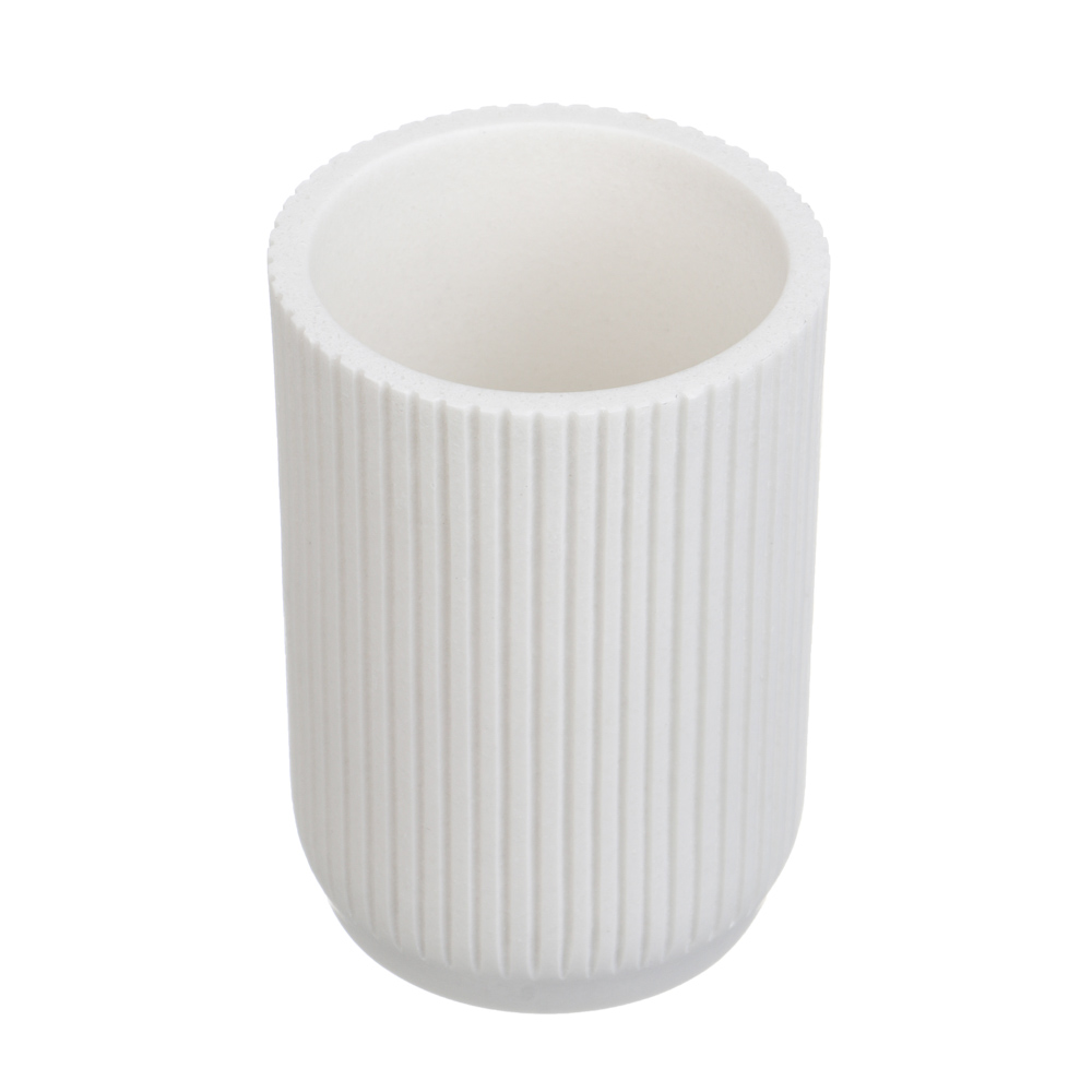 Стакан VETTA «Дакота» сочетает простоту формы и элегантную фактуру. Вертикальные полосы добавляют выразительности, а белый цвет делает аксессуар универсальным элементом ванной комнаты. Полирезин — прочный, влагостойкий материал, который легко очищается и не теряет внешний вид с течением времени. Идеален для хранения щёток и принадлежностей, особенно в комплекте с другими аксессуарами серии.