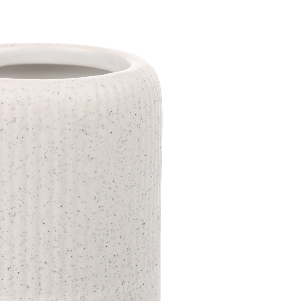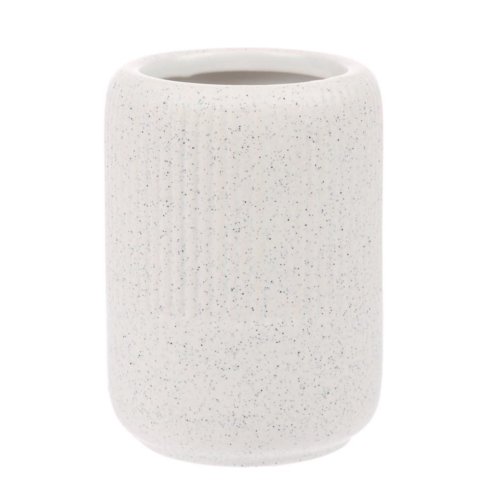Изящный керамический стакан NOBLE привлекает внимание своим утончённым дизайном и тёплым бежевым оттенком. Особую привлекательность изделию придаёт оригинальный декор в виде мелких точечных вкраплений, напоминающих крошечные кристаллики, которые создают неповторимый текстурный рисунок на поверхности. Выполненный из высококачественной керамики, стакан отличается практичностью и долговечностью. Материал не впитывает загрязнения и сохраняет свой первоначальный вид даже при постоянном контакте с водой.
