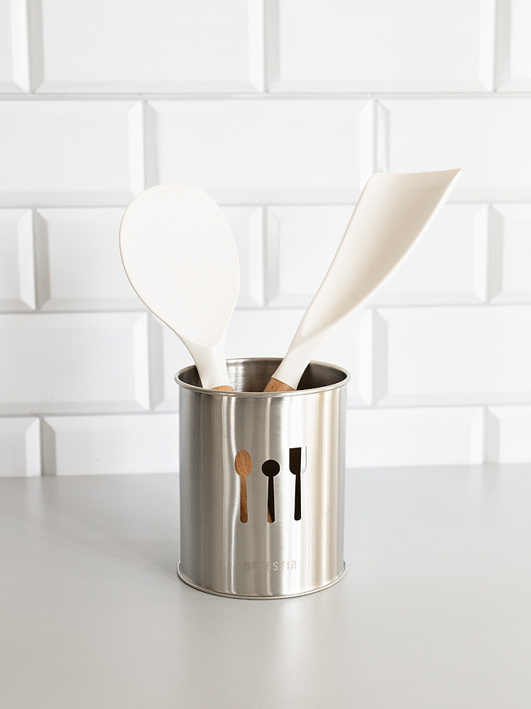 Стакан под столовые приборы DeNASTIA 10x12 см, из нержавеющей стали, матовый серый. Универсальная подставка для столовых приборов – практичное решение, которое поможет держать столовые приборы и кухонную утварь под рукой. Стакан для кухонных принадлежностей поможет организовать комфортное пространство и сохранить порядок на кухне. Этот лоток для кухонных принадлежностей прекрасно вместит в себя как ложки, вилки, так и половники и кухонные лопатки. Благодаря своей классической форме подставка будет идеальным дополнением к вашему интерьеру. Подставка изготовлена из высококачественной нержавеющей стали, которая обеспечивает долгий срок службы и устойчивость к коррозии. Размер подставки 10х10х12 см.