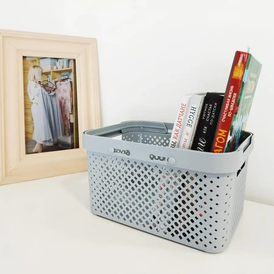 Корзинка для хранения с ручками Plast Team Stockholm, 5 л предназначена не только для размещения вещей на полках и стеллажах, хранения мелких ванных или канцелярских принадлежностей, уборки одежды, игрушек и книг в шкафы, но также и для открытого интерьерного хранения и украшение дома. Лаконичный геометрический узор на корпусе, спокойная светлая цветовая гамма и, конечно же, скандинавские комфорт и удобство – главные отличительные черты коллекции STOCKHOLM. Корзина имеет удобные для переноски ручки-вырезы по бокам корпуса, а также дополнительные съёмные складывающиеся ручки. Сэкономить пространство поможет прямоугольная форма корзины. Лёгкий материал и облегчённая конструкция не добавляет веса в наполненном виде. Изготовлено из безопасного перерабатываемого пластика, пригодного для хранения пищевых продуктов и детских игрушек, а также подходящего для помещений с повышенной влажностью. Коллекция корзин для хранения STOCKHOLM состоит из 4-ёх различных литражей небольшого и среднего формата, со съёмными ручками или с крышками. Размеры (ДхШхВ): 26 х 19,2 х 13,7 см.