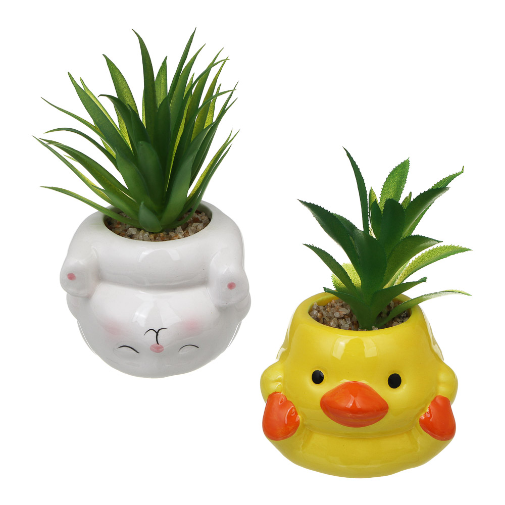 Искусственный суккулент в керамическом кашпо — стильный и практичный элемент декора, который станет украшением любого интерьера. Размер композиции 9 × 13–16,5 см позволяет удобно разместить её на рабочем столе, полке, подоконнике или прикроватной тумбочке. Растение выполнено из качественного пластика, максимально реалистично передающего форму и оттенки настоящего суккулента, а прочное керамическое кашпо с милым дизайном придаёт изделию уют и завершённость. Искусственный цветок не требует полива, ухода и освещения, всегда остаётся свежим и привлекательным, что делает его отличной альтернативой живым растениям. Такой декор создаст атмосферу уюта в доме или офисе, подчеркнёт стиль помещения и станет приятным подарком для друзей и близких.