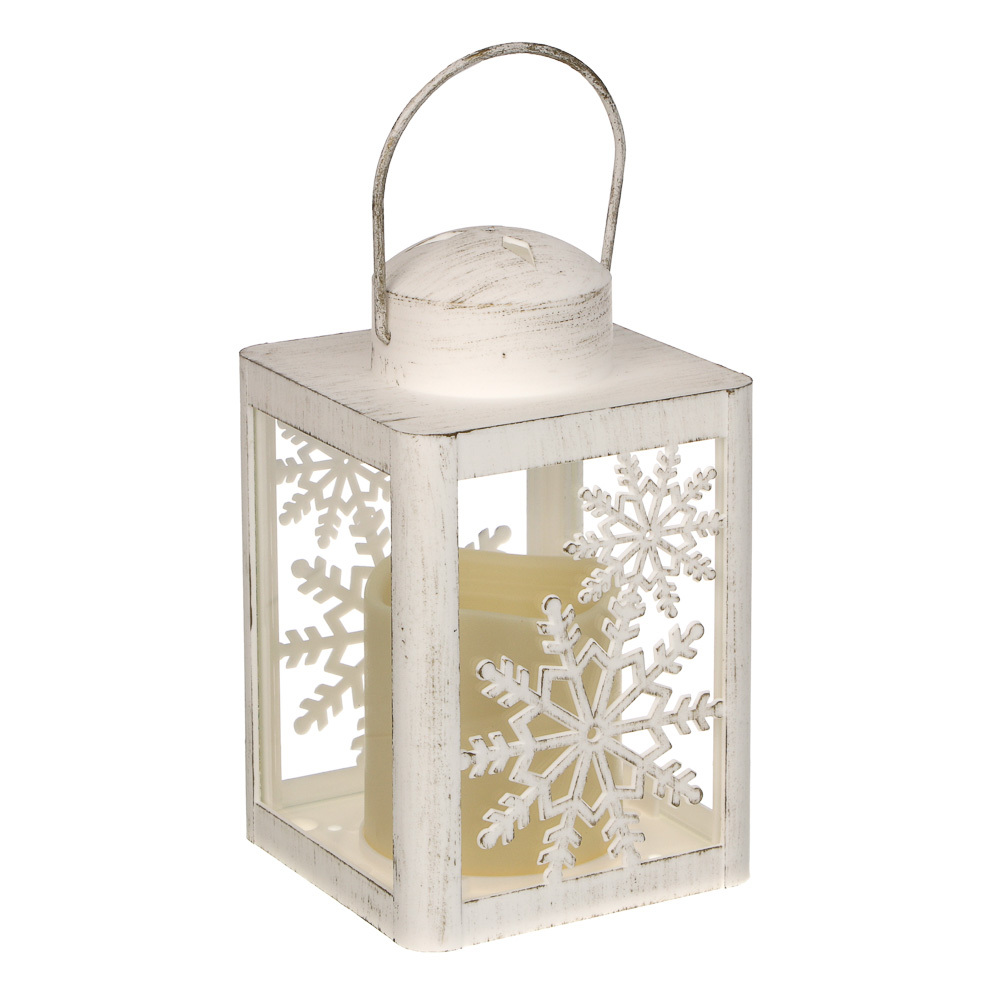 Светильник декоративный LED в виде фонаря от СНОУ БУМ, 10x10x17 см, в белом цвете со снежинками – это замечательный новогодний интерьерный декор, который мгновенно преобразит помещение и наполнит дом атмосферой тепла и праздника. Смотрится нежно и лаконично, прекрасно вписываясь в любой интерьерный стиль. Может использоваться в качестве ночника, а также будет сопровождать праздничные мероприятия в кругу семьи и романтические вечера. Изготовлен из прочных безопасных материалов, не нагревается и не требует подключения к электросети. Работает от 3-х батареек AAA-типа.