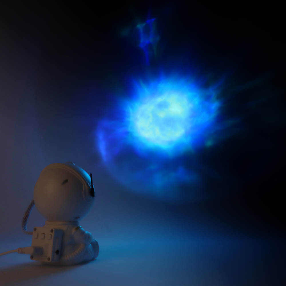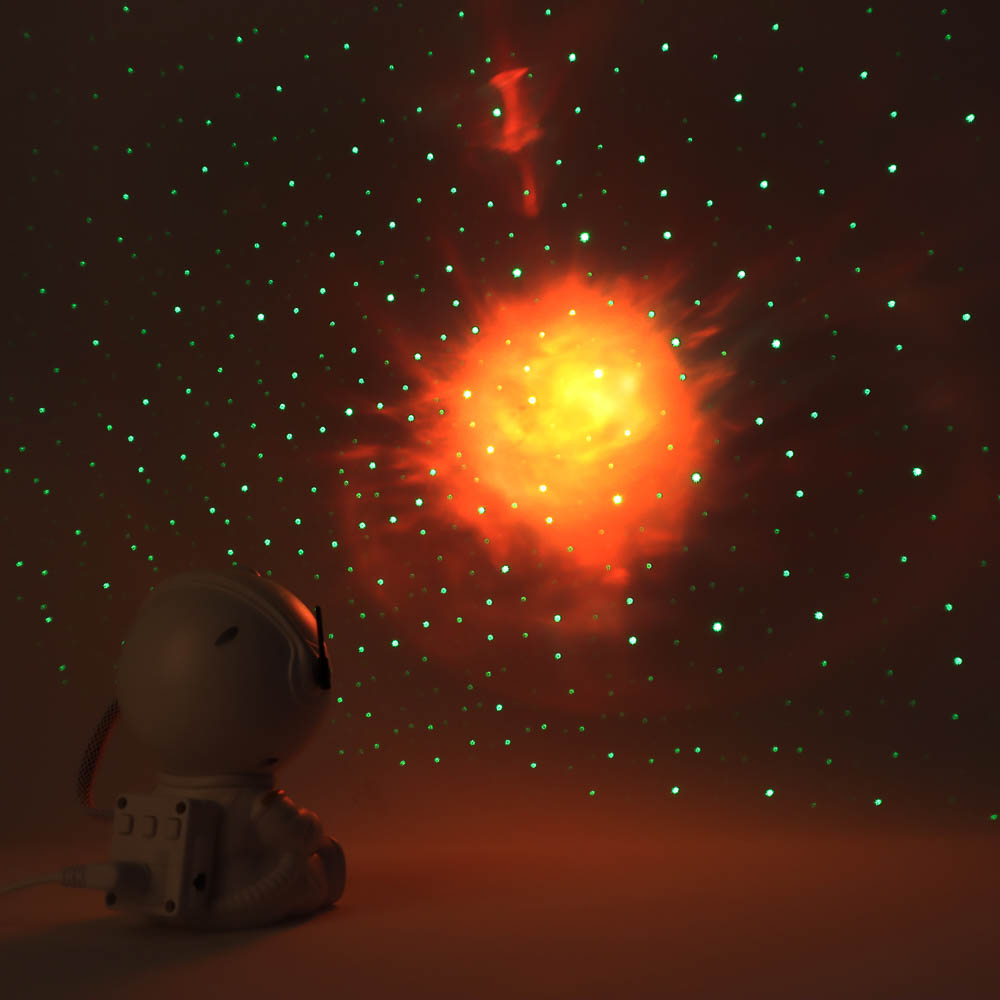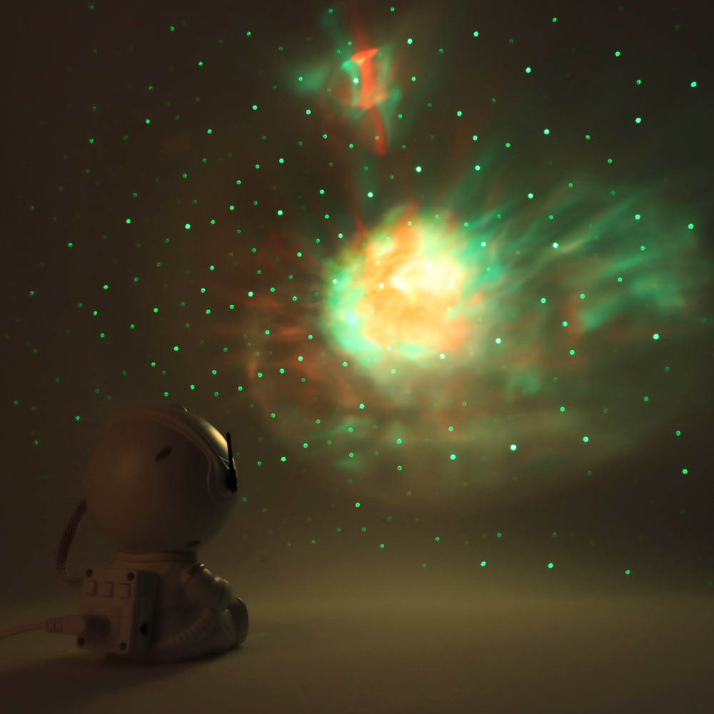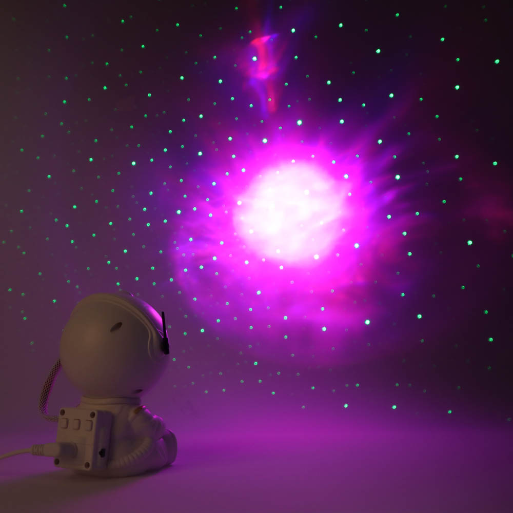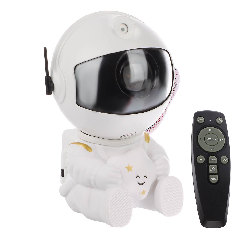 Создайте уютную и волшебную атмосферу в детской или спальне с ночником-проектором «Космонавт». Светильник проецирует эффект звездного неба на стены и потолок, превращая комнату в настоящую космическую вселенную. Компактный размер (9x8x13 см) и легкий пластиковый корпус позволяют удобно размещать светильник в любой комнате. Управление с помощью пульта ДУ делает настройку цвета, яркости и режимов проекции простой и удобной. Светильник мощностью 5W питается через USB, что обеспечивает безопасное использование дома или в поездках. Элегантный белый дизайн в виде космонавта делает ночник стильным элементом интерьера и отличным подарком для детей и любителей космоса. Он не только создаёт расслабляющую атмосферу перед сном, но и стимулирует воображение и интерес к астрономии.
