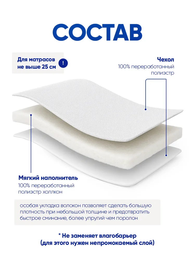 Простой в уходе наматрасник, который идеально плотно прилегает и добавляет слой мягкого комфорта, сохраняя ваш матрас чистым и свежим. Щедрый слой мягких наполнитей добавляет поддержки и комфорта.Эластичные ленты в каждом углу, чтобы удержать наматрасник на месте.Мягкая ткань дышит и приятно ощущается на коже, в то время как за ней легко ухаживать