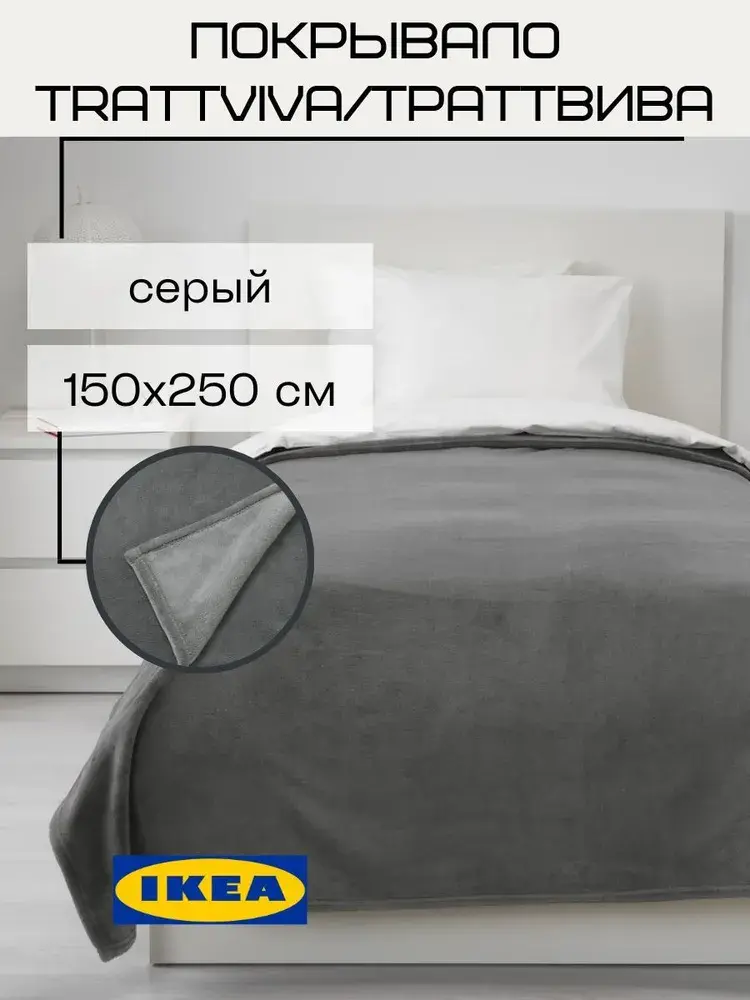 Покрывало ТРАТТВИВА, 150х250 см - отличный вариант текстиля для спальни или детской. Это легкое и очень мягкое покрывало прекрасно работает как дополнительный слой тепла и уюта, когда вам это нужно, но имейте в виду, что из-за него может быть немного сложнее вставать с кровати. Флис — мягкий и простой в уходе материал, который можно стирать в машине. Можно использовать как покрывало на односпальную кровать или как одеяло большого размера. Покрывало подходит для кроватей шириной 90 см - подзор около 30 см с каждой стороны. Для кроватей шириной 120 см - подзор около 15 см с каждой стороны. Правила ухода: Машинная стирка, максимум 40°C, обычный режим. Не отбеливать. Не сушить в сушильной машине. Не гладить. Не подвергать химической чистке. Состав: 100 % полиэстер (100 % переработанный).