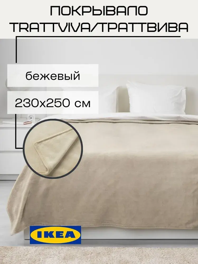 Покрывало ТРАТТВИВА, 230х250 см - отличный вариант текстиля для спальни или детской. Это легкое и очень мягкое покрывало прекрасно работает как дополнительный слой тепла и уюта, когда вам это нужно, но имейте в виду, что из-за него может быть немного сложнее вставать с кровати. Флис — мягкий и простой в уходе материал, который можно стирать в машине. Можно использовать как покрывало на односпальную кровать или как одеяло большого размера. Покрывало подходит для кроватей шириной 140 см - подзор около 45 см с каждой стороны. Для кроватей шириной 160 см - подзор около 35 см с каждой стороны. Для кроватей шириной 180 см - подзор около 25 см с каждой стороны. Правила ухода: Машинная стирка, максимум 40°C, обычный режим. Не отбеливать. Не сушить в сушильной машине. Не гладить. Не подвергать химической чистке. Состав: 100 % полиэстер (100 % переработанный).