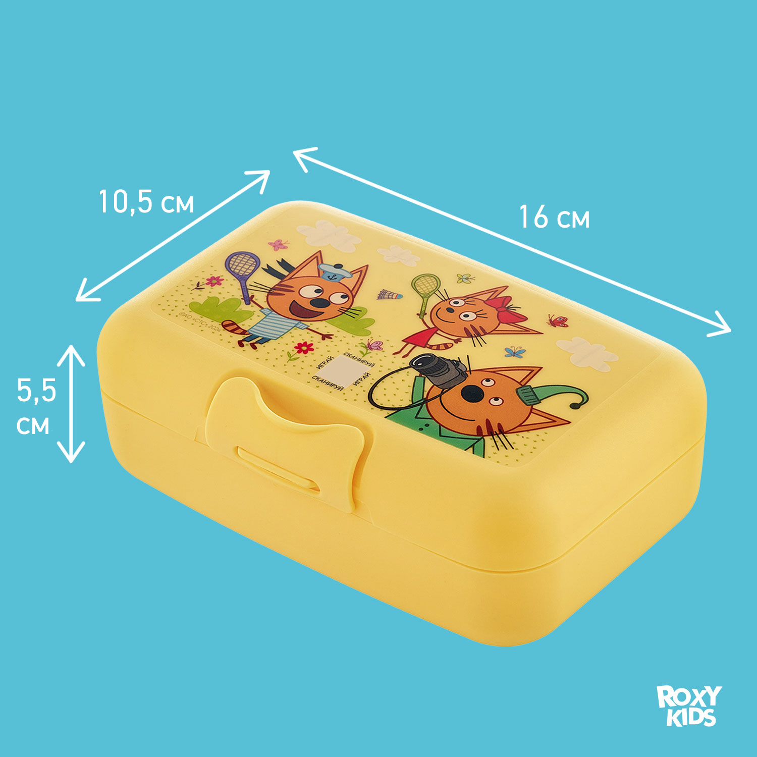 Ланч-бокс «Три Кота» – идеальный аксессуар для вкусного и веселого перекуса. Яркие изображения любимых героев сделают каждый прием пищи ребенка радостным событием. Благодаря плоской и компактной форме ланч-бокс легко помещается в рюкзаке или небольшой сумке. Надежный замок гарантирует герметичность, поэтому пища всегда остается свежей. Ланч-бокс сделан из легкого и ударопрочного материала, поэтому прослужит долго и останется целым даже при падении или ударе. Контейнер можно использовать в микроволновой печи в режиме разогрева до 1,5 минут, замораживать при температуре до -5°C и нагревать до 70°C. Также его можно мыть на верхней полке посудомоечной машины.