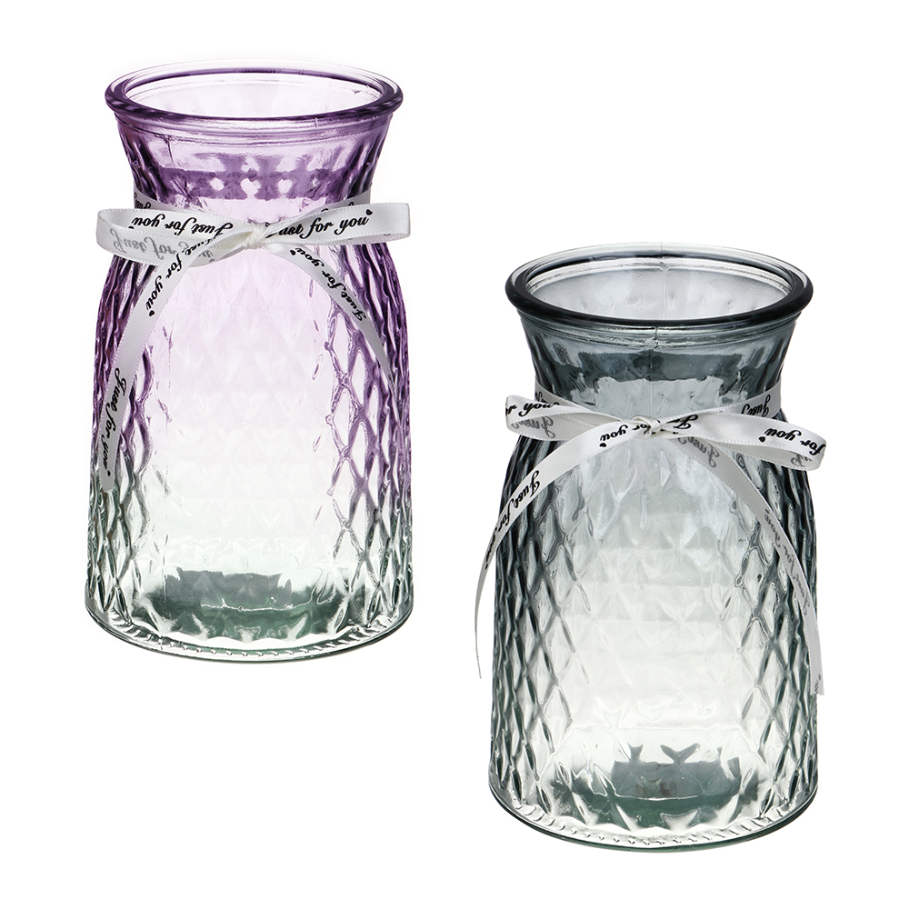 Ваза из цветного стекла размером 18х11 см — изысканное украшение для любого пространства. Нежный ромбовидный орнамент добавляет изящества и утонченности, а милый бантик придает вазе трогательный и праздничный вид. Благодаря компактным размерам она идеально впишется в любой интерьер. Может использоваться в качестве самостоятельного декора, а также будет прекрасно смотреться вместе с цветочным букетом из живых или искусственных цветов. Ваза станет прекрасным подарком для близких или стильным акцентом в вашем доме, наполняя пространство теплом и уютом. Цвет в ассортименте.