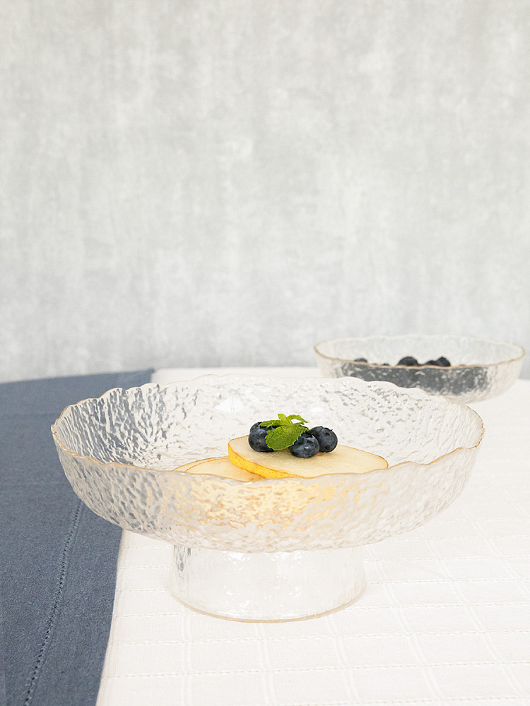 Ваза для фруктов/конфет DeNASTIA лед D20,5x7,5; 810 мл стекло, золотая кайма, цвет прозрачный. Фруктовница ваза для конфет DeНАСТИЯ на ножке — это универсальное интерьерное решение для дома, дачи или офиса. Конфетница станет украшением вашего интерьера и добавит нотку индивидуальности в ваше пространство. Блюдо на ножке из рифленого стекла - легкий способ оживить сервировку и элегантно подать самые простые лакомства. Фруктовница имеет устойчивое основание из утолщенного стекла. Стеклянная конфетница универсальный предмет интерьера, она отлично впишется в любой интерьер столовой, гостиной или кабинета. Используйте универсальное сервировочное блюдо для конфет, орехов, сухофруктов, для подачи фруктов и овощей. Создайте стильную праздничную сервировку при помощи необычной фактурной салатницы.