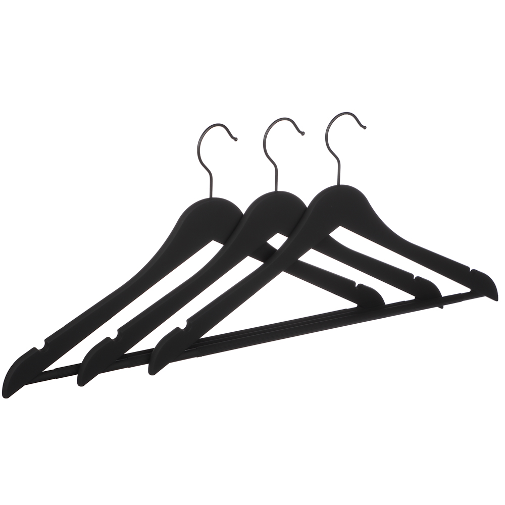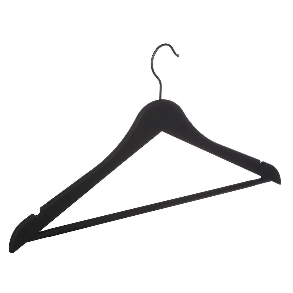 Набор вешалок для одежды VETTA — это стильный и функциональный аксессуар для вашего гардероба. Вешалки изготовлены из прочного пластика ABS с покрытием софт-тач, которое предотвращает соскальзывание одежды. Благодаря своей конструкции они выдерживают даже тяжёлую верхнюю одежду. Стильный чёрный цвет и лаконичный дизайн впишутся в любой интерьер. В наборе три вешалки размером 44,5x23x1 см, что позволяет использовать их для разных типов одежды. Они идеально подойдут для рубашек, блузок, платьев и других предметов гардероба. Набор вешалок для одежды VETTA поможет организовать хранение одежды и сохранить её в идеальном состоянии.