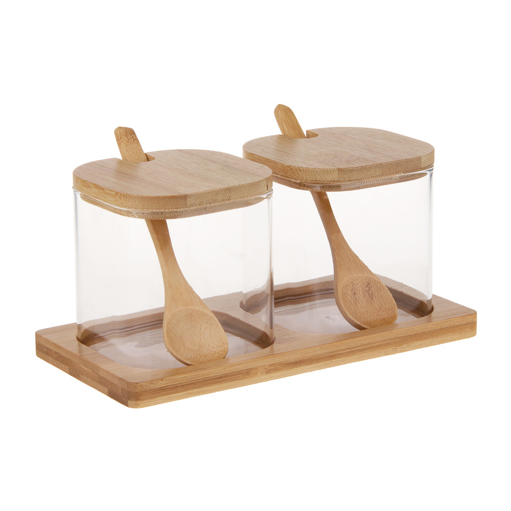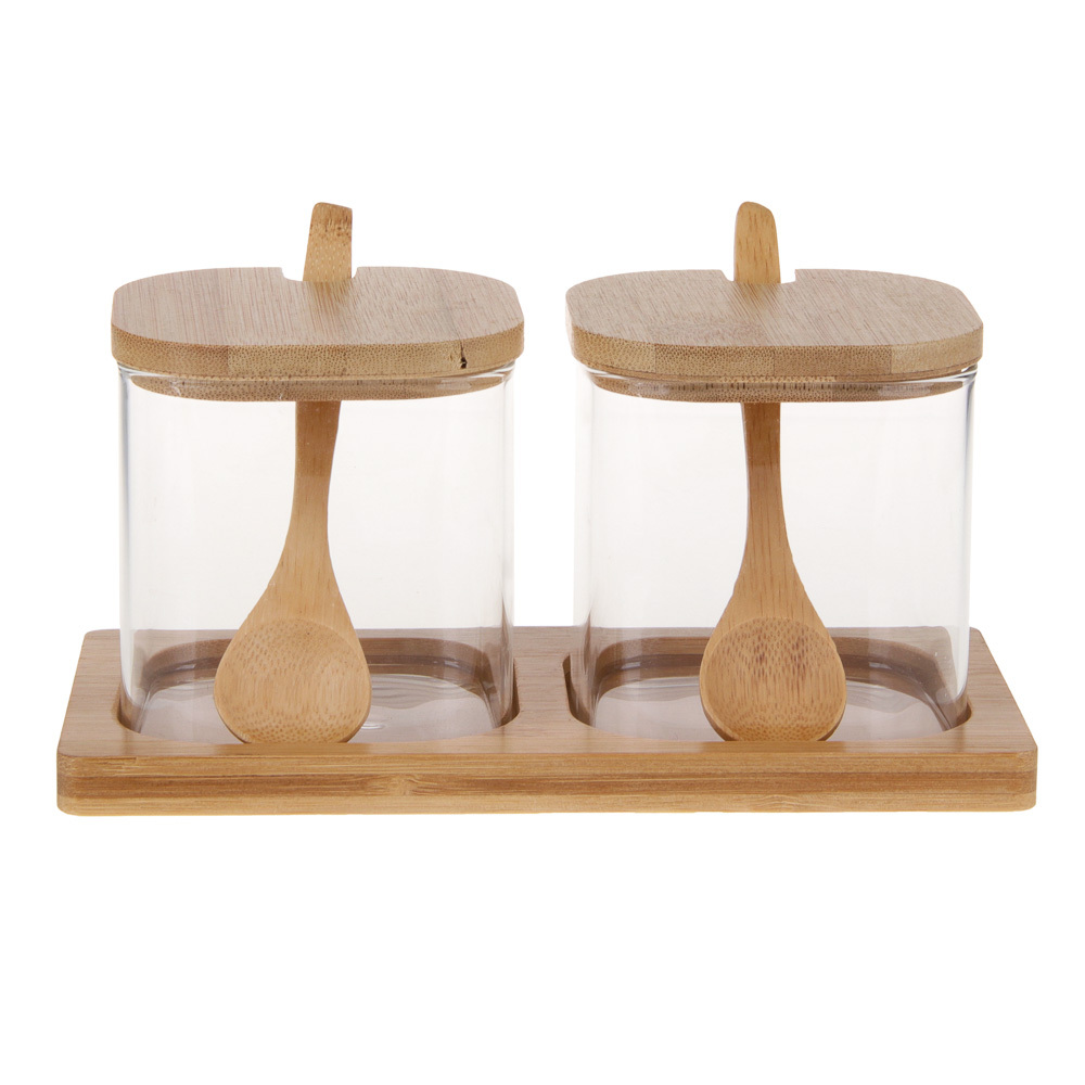Набор банок для хранения VETTA «ЭКО» состоит из двух емкостей объемом 350 мл с крышкой и ложкой, а также подставки. Подходит для хранения сыпучих пищевых продуктов: орехов, круп, сахара, соли, специй или чая. Прозрачные банки стильно смотрятся и позволяют легко определить содержимое, экономя ваше время и позволяя вовремя пополнять запасы. Набор выполнен из качественного и прочного стекла и натурального бамбука. Набор банок для хранения VETTA «ЭКО» сможет стать настоящим украшением кухни или приятным подарком для ваших родных и близких!