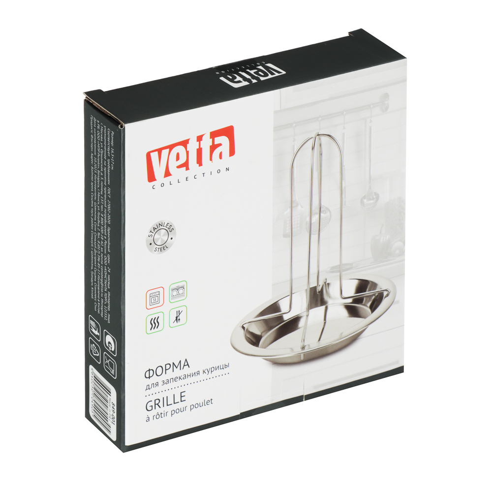 Форма с подставкой из нержавеющей стали для запекания курицы VETTA – идеальное решение для приготовления вкусной и здоровой пищи. Размеры 16,5x17 см позволяют разместить курицу целиком, обеспечивая равномерное приготовление. Благодаря удобной подставке, вы можете легко переносить форму в духовку и из нее. Материал формы – нержавеющая сталь – гарантирует долговечность и простоту ухода. Теперь вы сможете удивить своих близких и гостей аппетитной и сочной курицей, приготовленной по вашему любимому рецепту.