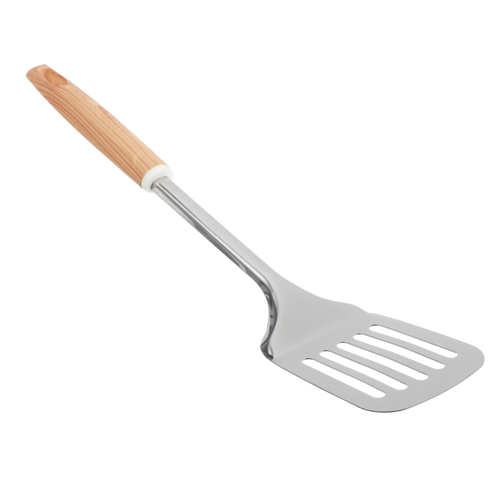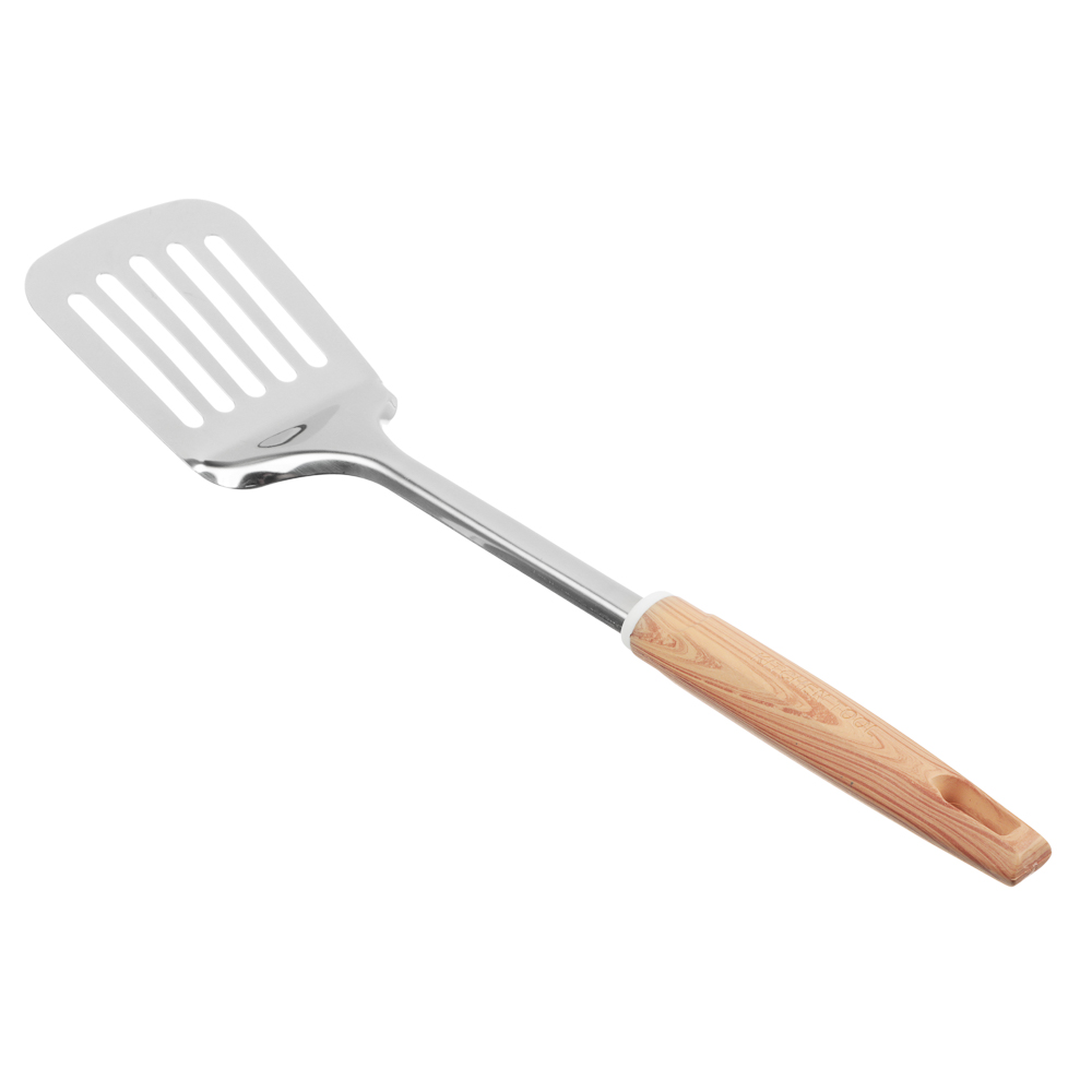 Лопатка VETTA «Стем» 33,5х7 см – это практичный инструмент для кухни, который сочетает в себе функциональность, долговечность и эстетичный дизайн. Изготовлена из высококачественной нержавеющей стали, устойчивой к коррозии, деформации и износу. Выдерживает высокий нагрев, поэтому подходит для переворачивания и извлечения продуктов из горячей посуды, в том числе из кипящего масла. Лишний жир, масло и жидкость эффективно стекают через прорези, не попадая в тарелку. Ручка из полипропилена не нагревается и комфортно ложится в руку. Предусмотрено отверстие для вертикального хранения.