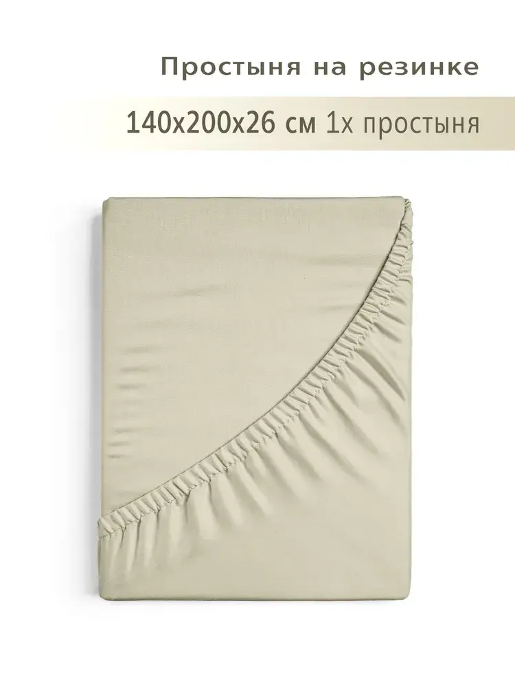 YERRNA простыня на резинке 140*200*26см серо-бежевый